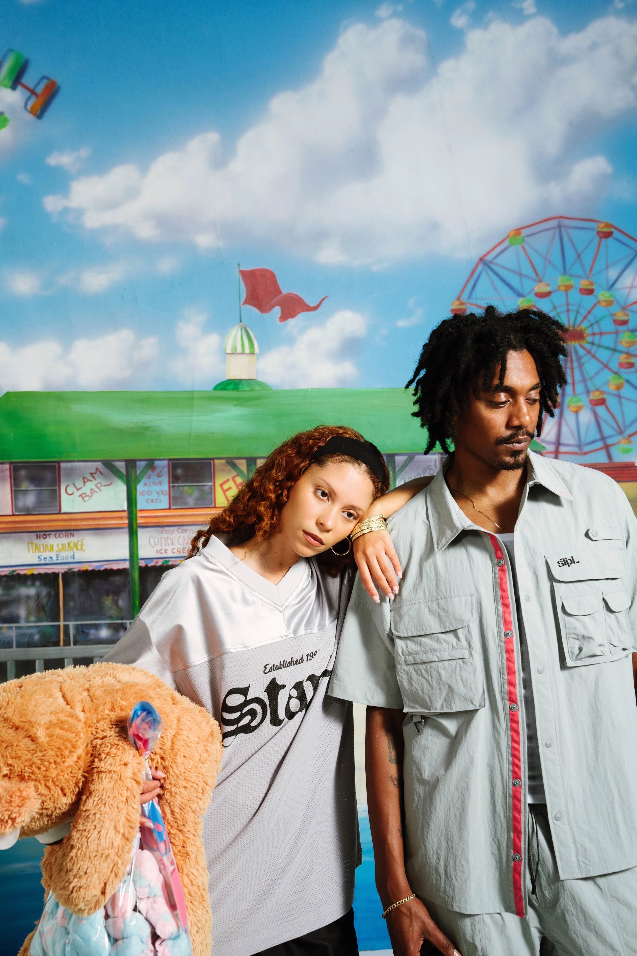 BUILT FOR LONG DAYS, LATE NIGHTS, AND EVERYTHING IN BETWEEN.FROM TECHNICAL SETS AND MESH JERSEYS, TO ALL OVER PRINT SHIRTS, GRAPHIC TEES, AND STATEMENT ACCESSORIES, THIS DROP BLENDS BOARDWALK NOSTALGIA WITH A CITY-STATE-OF-MIND.